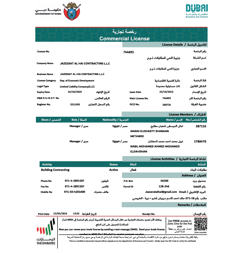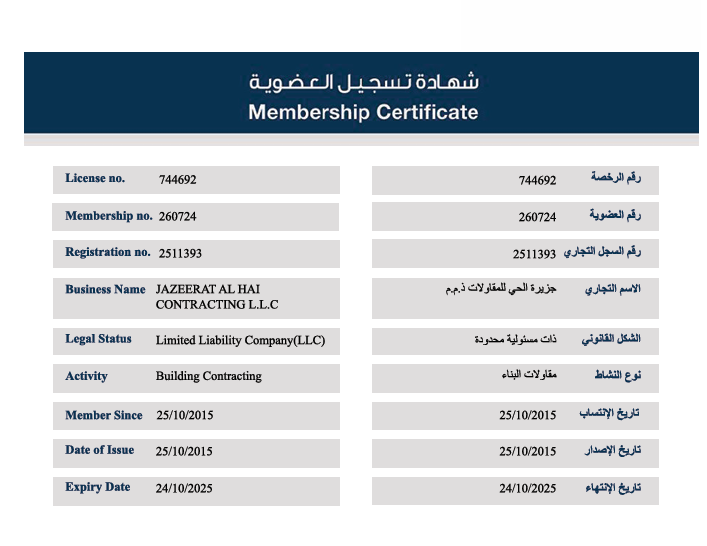 Jazeerath Al Hai Constructions L.L.C was established in year 2015 in Dubai UAE As a Construction Company G + 1 concrete and steel buildings such as Villas, Warehouses factories, showrooms mosques etc. we are full service construction firm Offering a